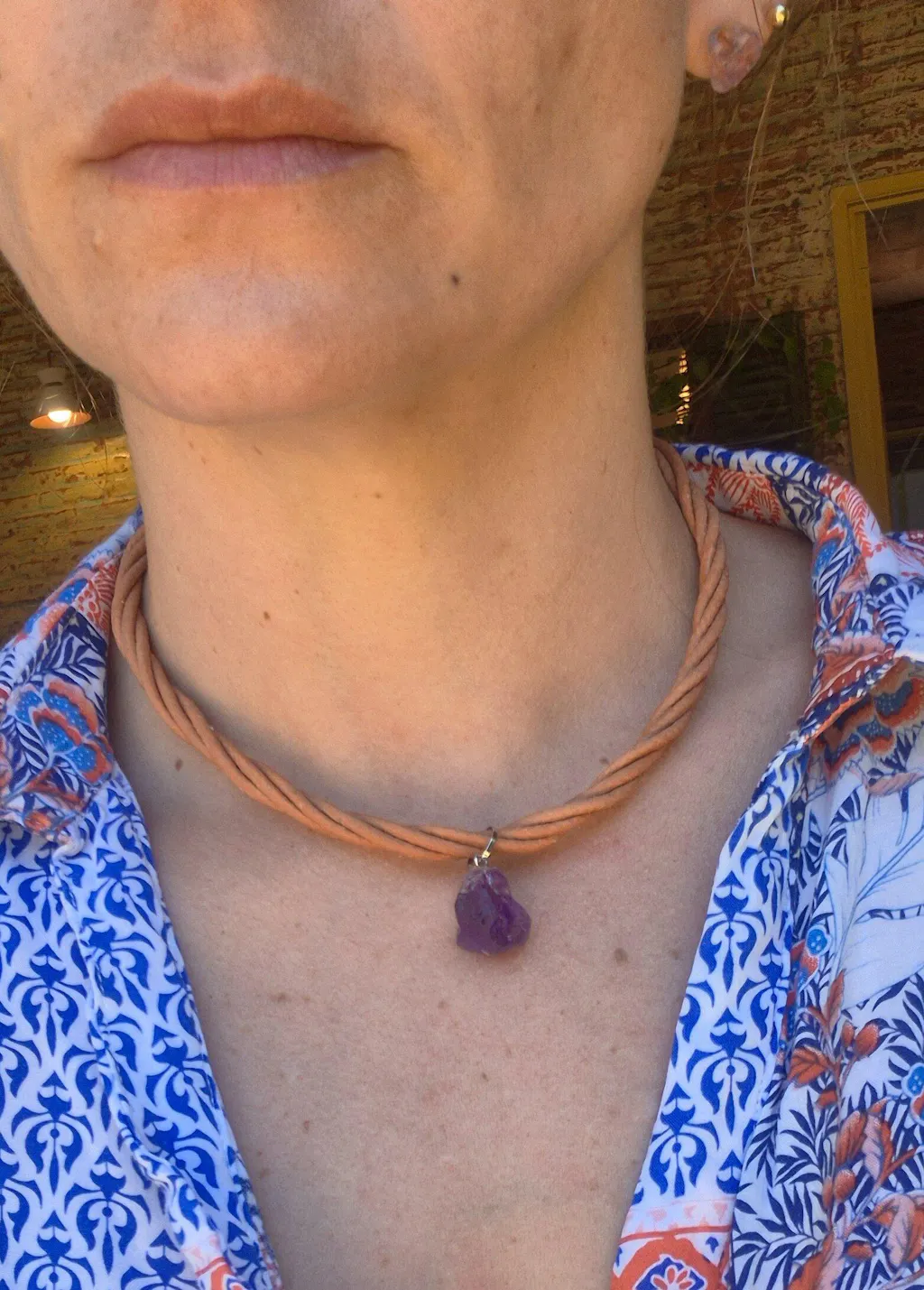 O resultado é um colar leve, orgânico e potente, que envolve o corpo como um amuleto de presença e força.